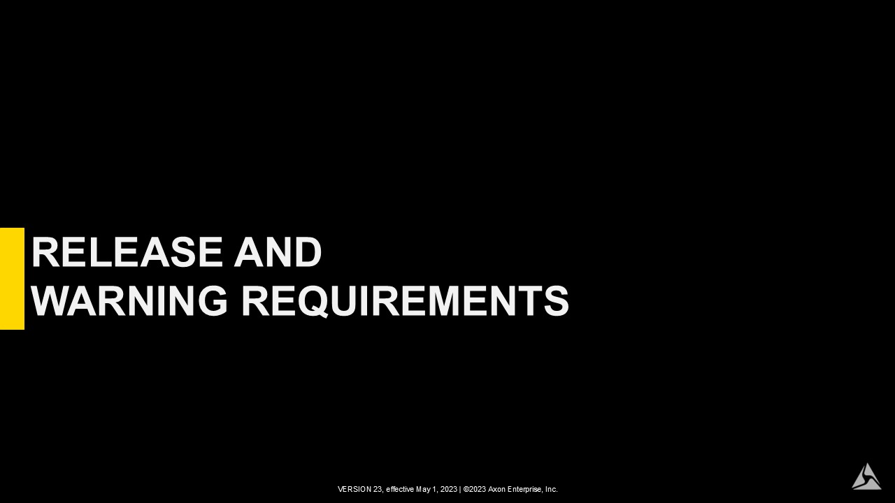 Nothing in this PowerPoint, TASER’s energy weapon Smart Use Considerations, or associated training materials establishes any standard of care.